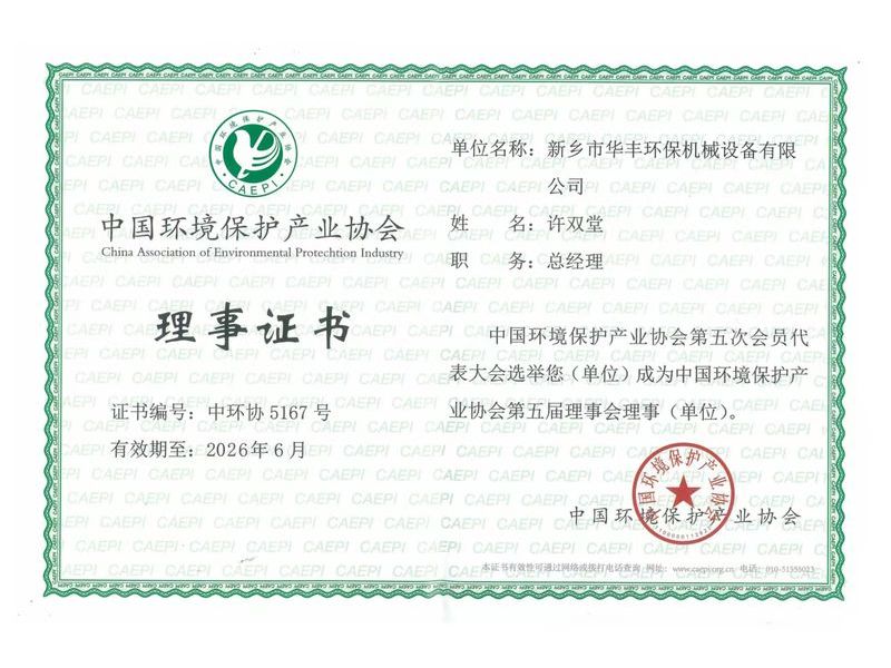 中國環(huán)境保護產(chǎn)業(yè)協(xié)會理事